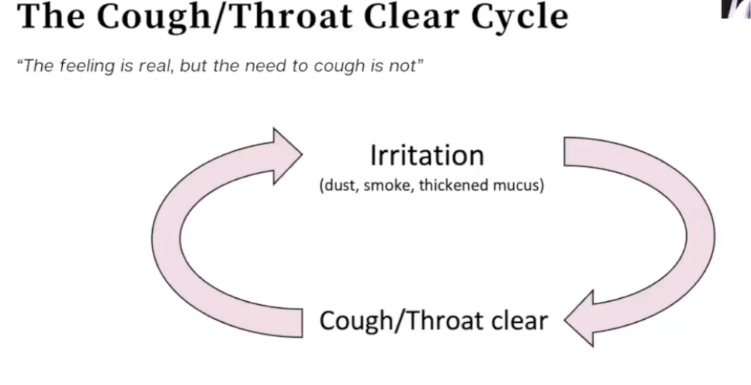 - You experience a sensation of needing to cough or throat clear – almost like needing to ‘scratch an itch’ when you’ve been bitten by a mosquito.
